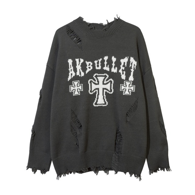2カラー展開 韓国ストリート 韓国カジュアル ユニセックス トレンド ダメージ加工 クロスロゴ セーター mry001468