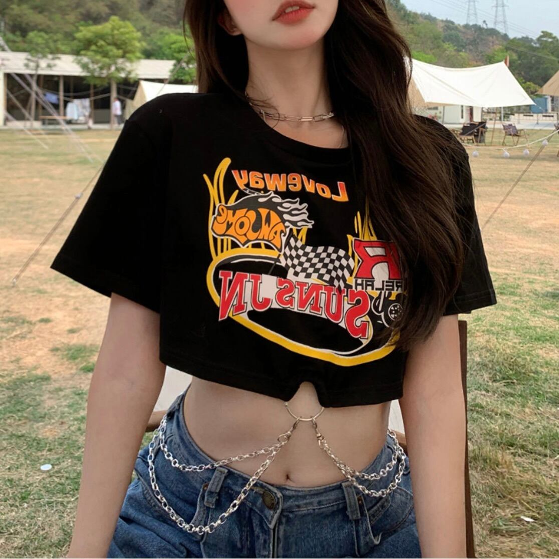 2023SS アメリカン レトロ オールマッチ 半袖 Tシャツ 韓国ストリート 韓国カジュアル mry000703