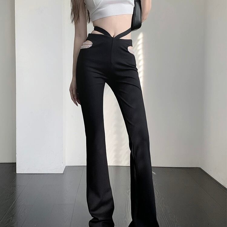 2023SS パールチェーン カジュアル デザインパンツ 韓国カジュアル 韓国ストリート mry000704
