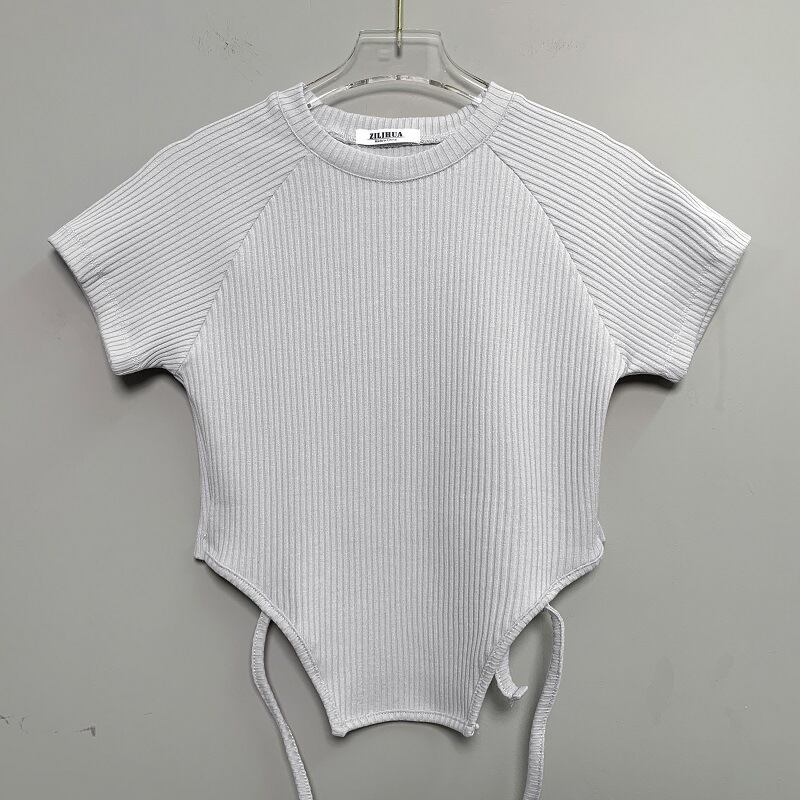 2023SS セクシー スリム ストラップ ウエストレス 半袖Tシャツ 韓国カジュアル 韓国ストリート mry000782