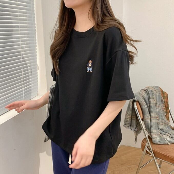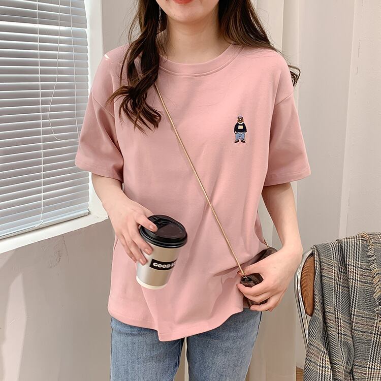4カラー展開 クマちゃん ワンポイント 半袖 Tシャツ トップス 韓国カジュアル 韓国ガーリー mry000796