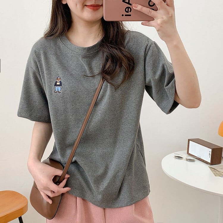 4カラー展開 クマちゃん ワンポイント 半袖 Tシャツ トップス 韓国カジュアル 韓国ガーリー mry000797