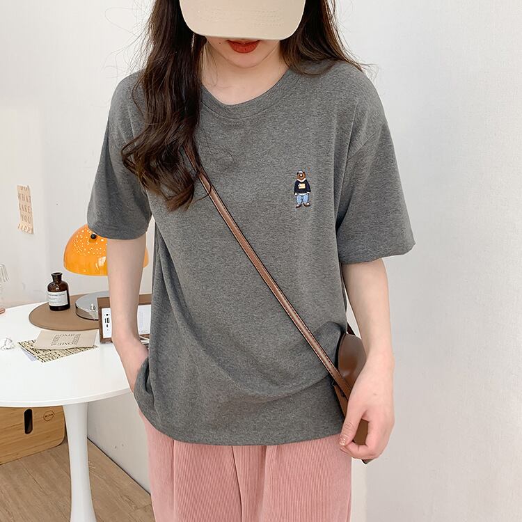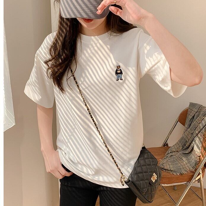 4カラー展開 クマちゃん ワンポイント 半袖 Tシャツ トップス 韓国カジュアル 韓国ガーリー mry000798