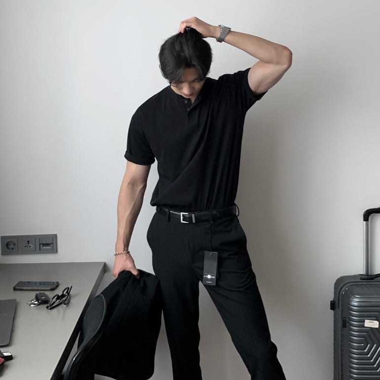 2カラー展開 2023SS アシメントリー ヘンリーネック クラシック ポロシャツ 韓国カジュアル mry000884