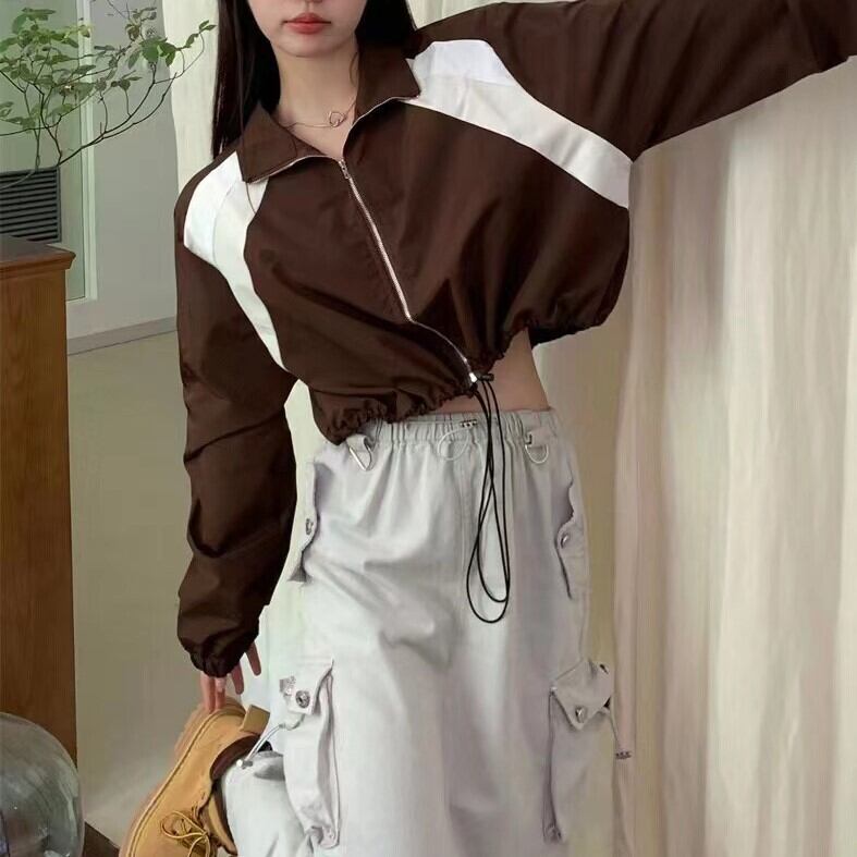 2カラー展開 アメリカン レトロ ショート丈 ジップ ジャケット 韓国ストリート 韓国カジュアル mry000954