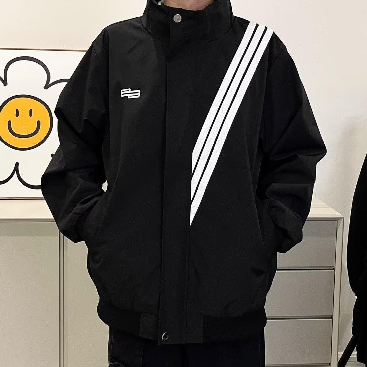 スタンドカラー スリーストライプライン モノトーン ユニセックス 春 冬 韓国カジュアル 韓国ストリート mry000961