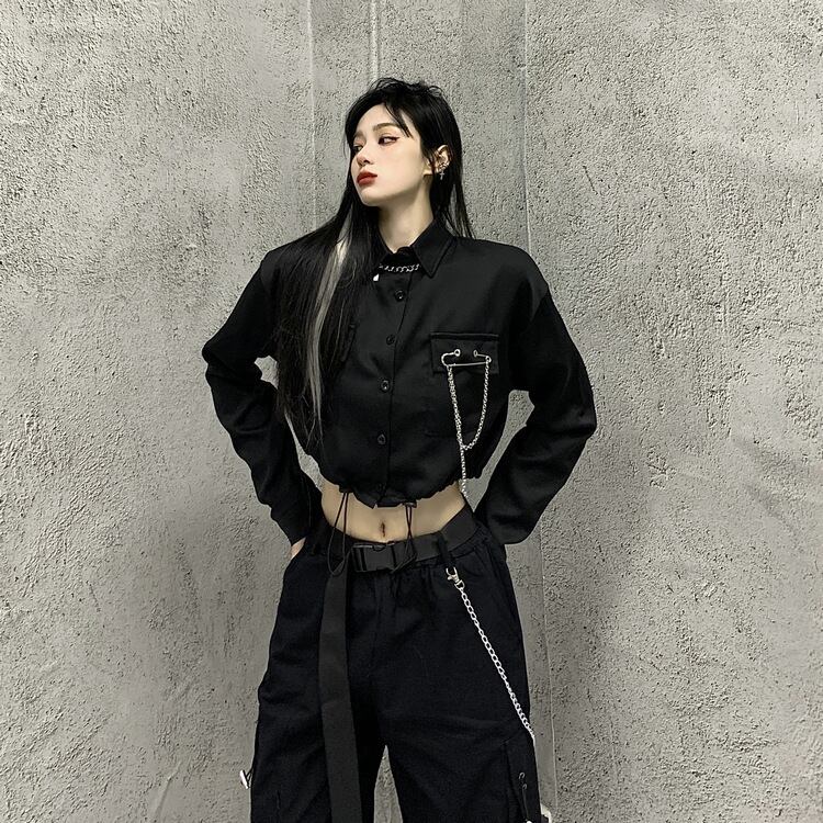 トップス ブラック ショートシャツ 韓国カジュアル 韓国ストリート mry000969
