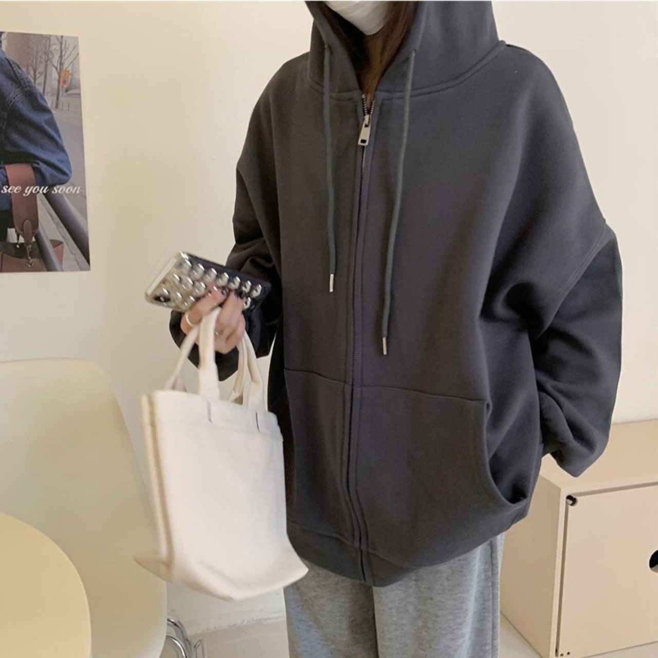 4カラー展開 ジップ パーカー ユニセックス 韓国カジュアル 韓国ストリート mry000973