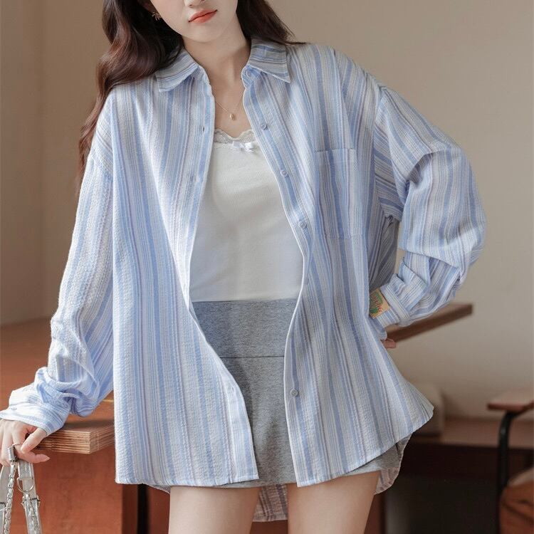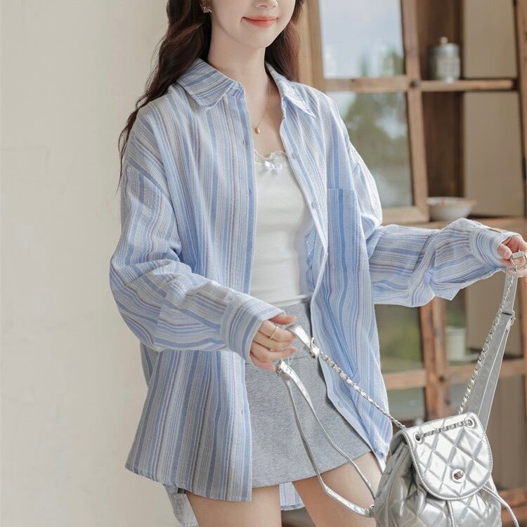 韓国カジュアル 韓国デザイン オーバサイズ ストライプシャツ mry001108