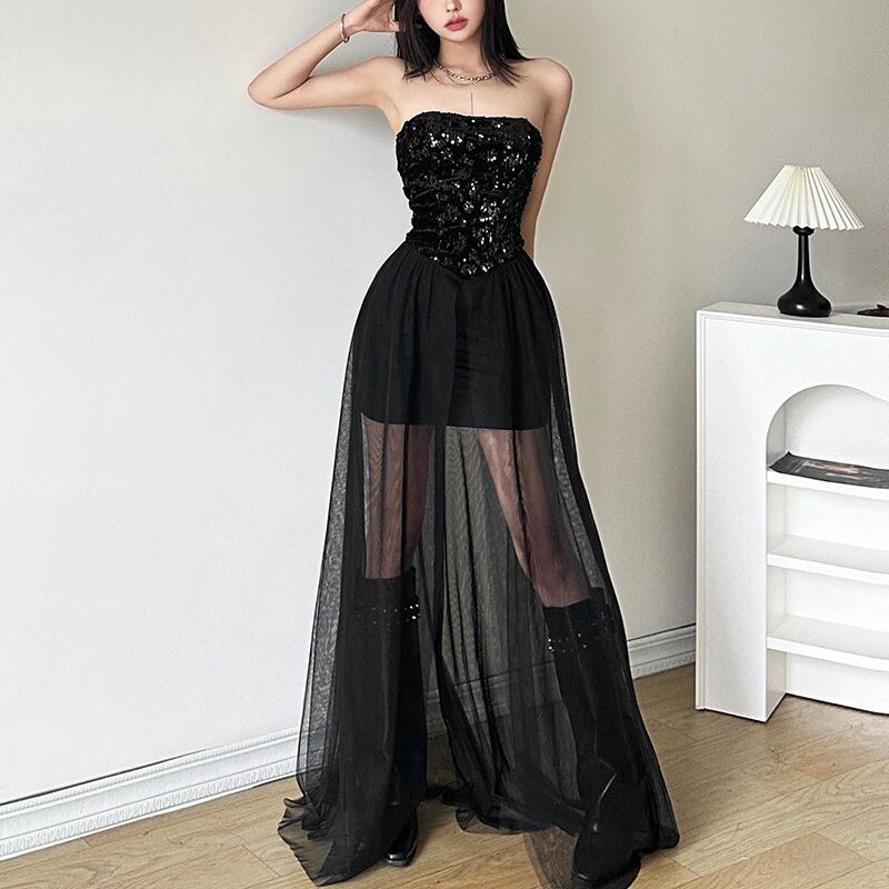 韓国デザイン 韓国カジュアル モノトーン ドレス ブラックワンピース mry001129