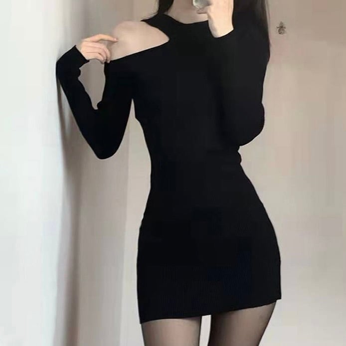 【レビュー高評価 / 細見えNo.1】 ワンショルダーニットワンピース mry001157