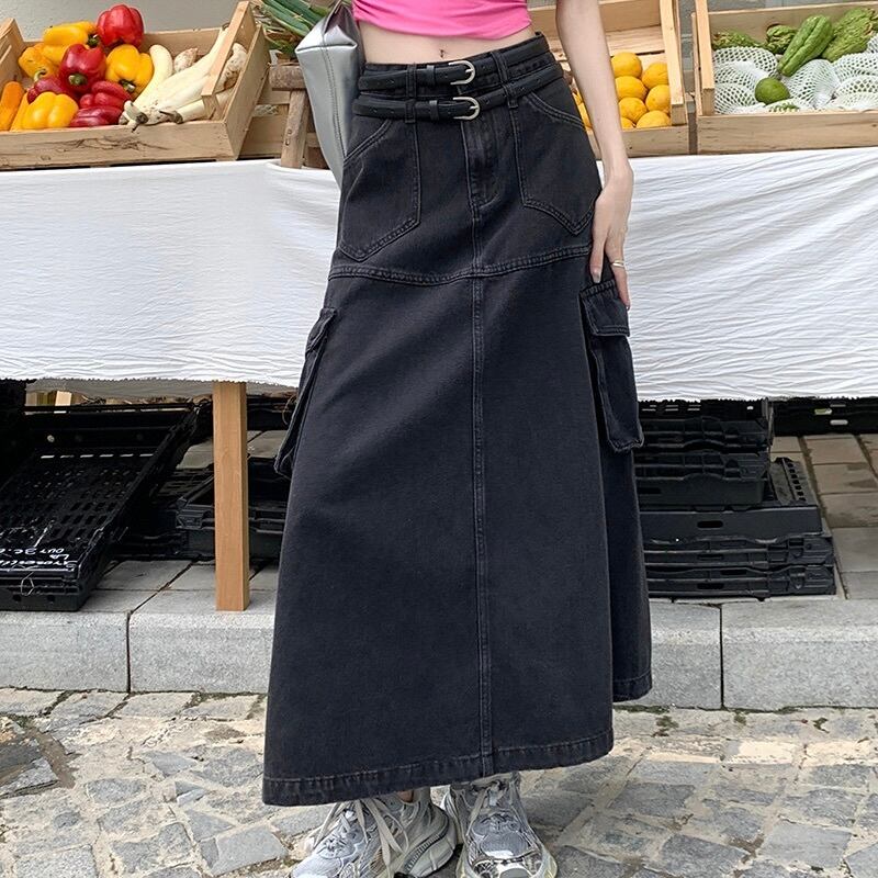 韓国ストリート 韓国カジュアル シームライン デニム生地 ロングスカート mry0011
