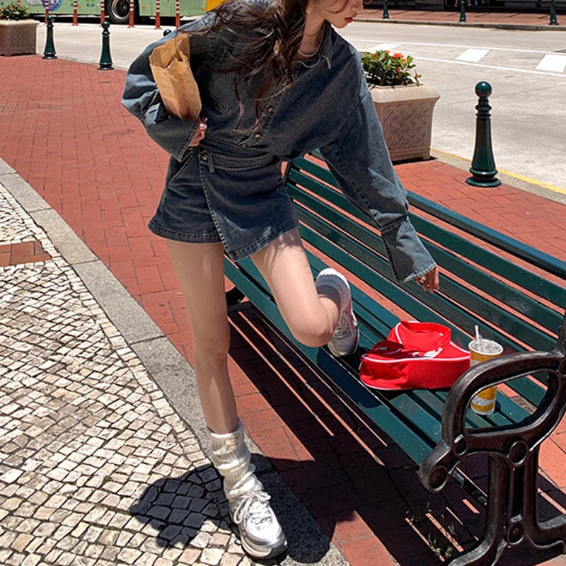 アメリカン 韓国ストリート 韓国デザイン デニム生地 セットアップ mry001197