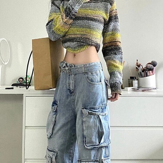 アメリカン 韓国ストリート 韓国カジュアル ワイド ハイウエスト デニムパンツ mry001214