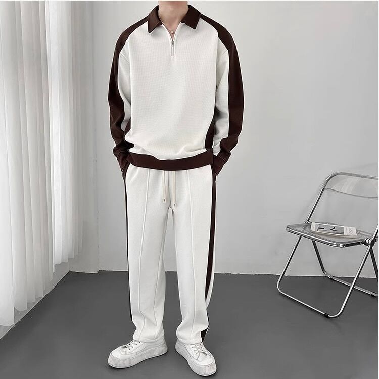 2カラー展開 韓国ストリート 韓国カジュアル モノトーン ハーフジップ ラインパンツ セットアップ mry001245