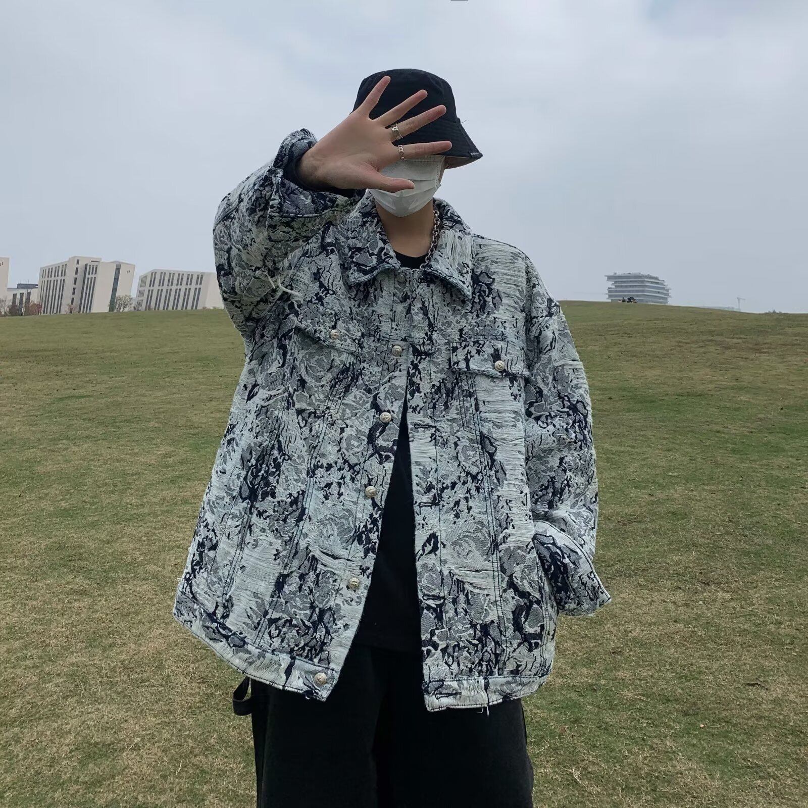アメリカン 韓国ストリート 韓国カジュアル トレンド 花柄 ワイド デニムジャケット mry001263