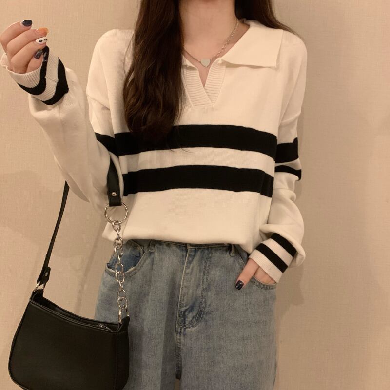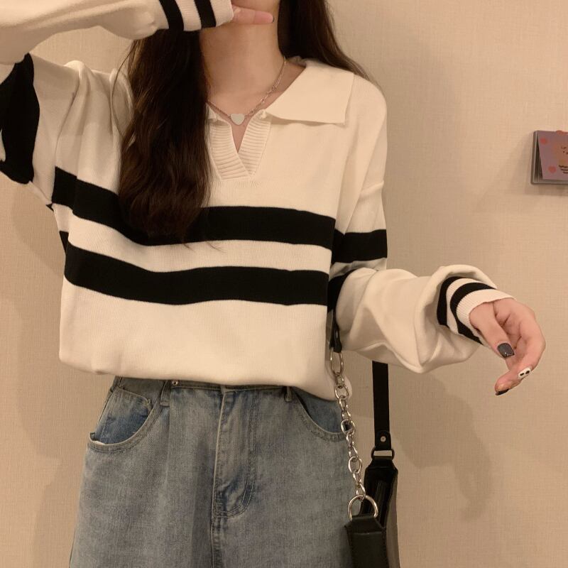2カラー展開 韓国ストリート韓国カジュアル トレンド ストライプ ユニーク ゆったりニット mry001305