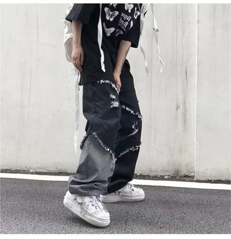 【Unisex】 Distressed Vintage Wide Denim Pants mry001313