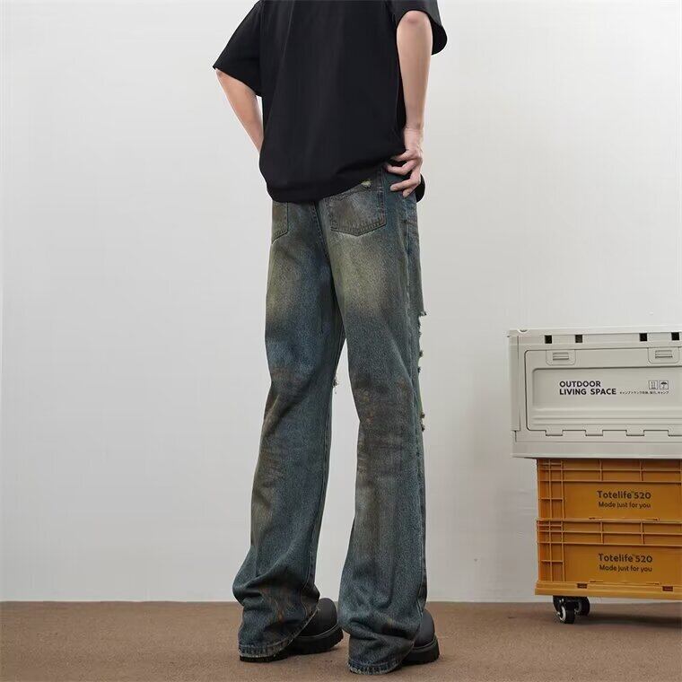 韓国ストリート 韓国カジュアル ダメージ加工 ヴィンテージ デニムパンツ mry001344