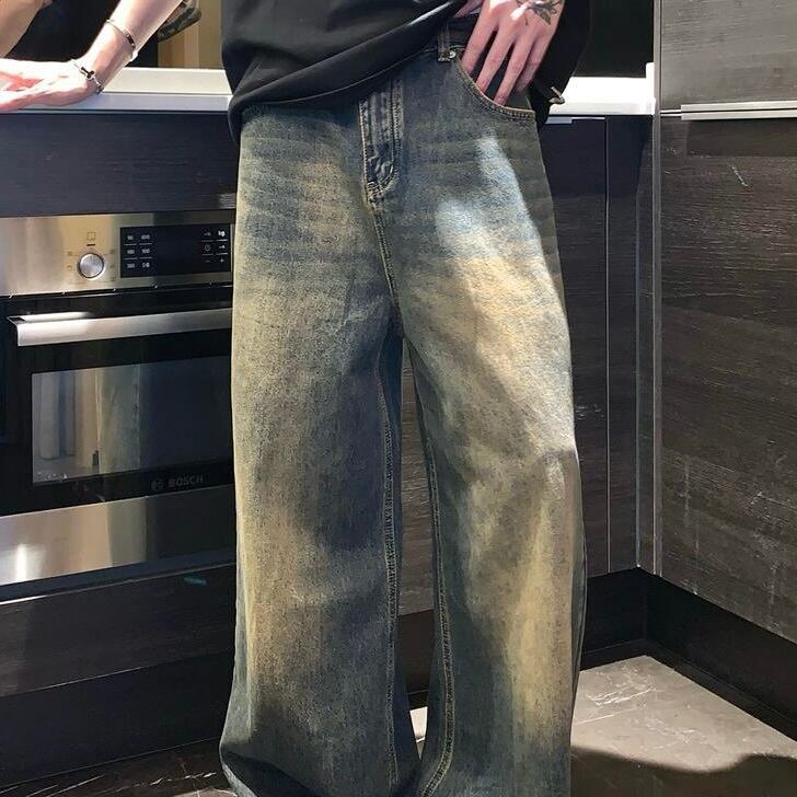 韓国ストリート 韓国カジュアル レトロ ワイドシルエットデニムパンツ mry001368