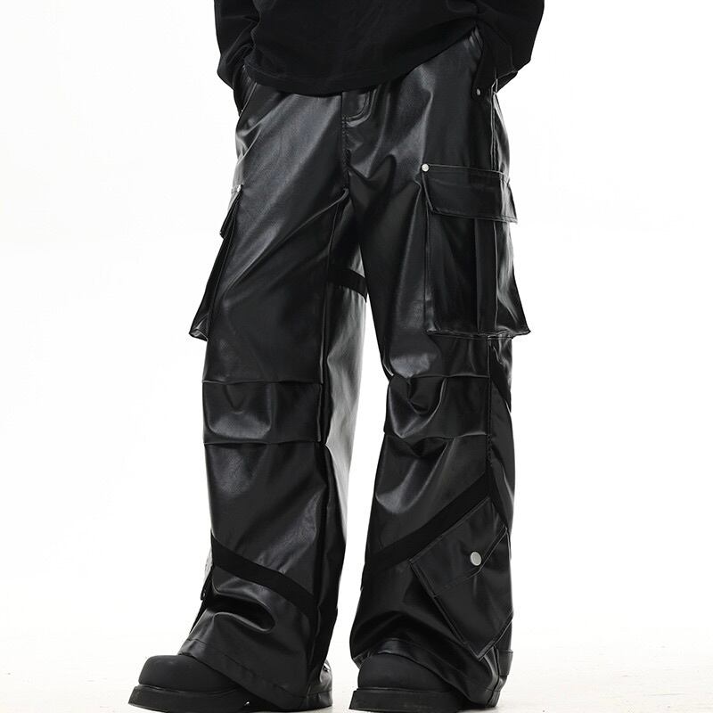 Korean street trend leather wide pants ワイドパンツ mry001407