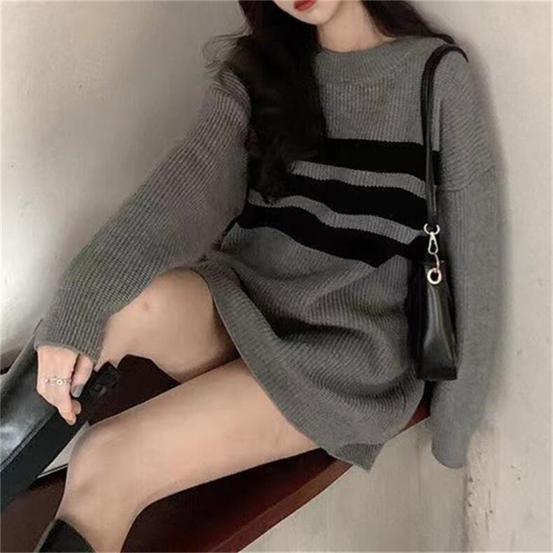 3カラー展開 韓国ストリート 韓国カジュアル ストライプ オーバーサイズ ニット mry001304