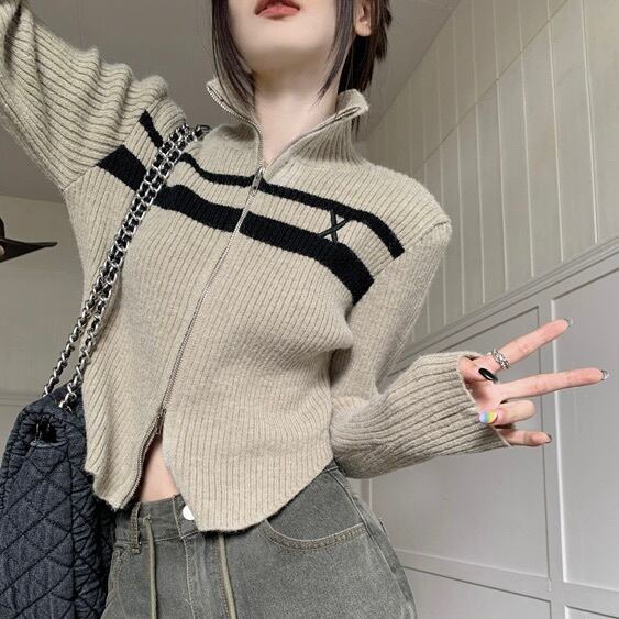 2カラー展開 韓国デザイン 韓国カジュアル ショート丈 タートルネック ジッパー付きパーカー mry001303