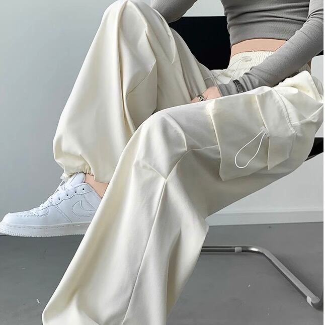 3カラー展開 韓国ストリート 韓国カジュアル ハイウエスト ワイド カーゴパンツ mry001215