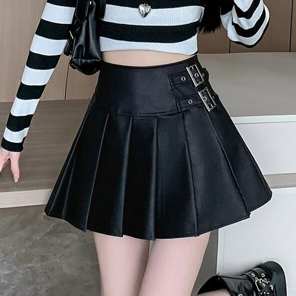 3カラー展開 韓国デザイン 韓国カジュアル レザー素材 ミニスカート mry001127
