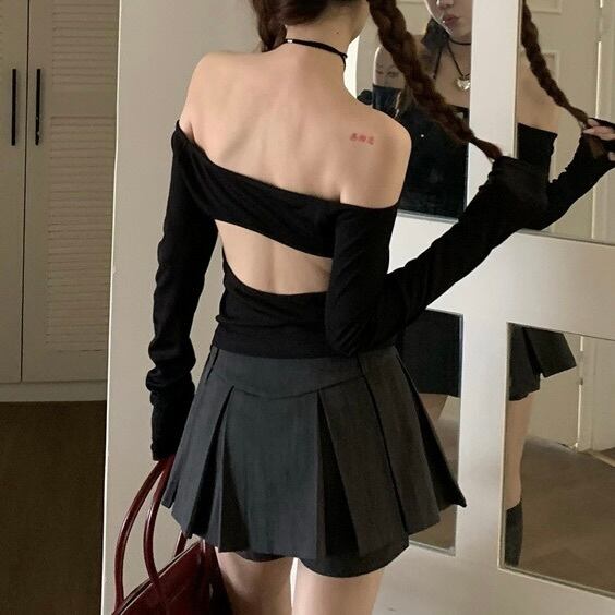2カラー展開 韓国デザイン 韓国カジュアル オフショルダー フィット トップス mry001105