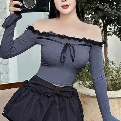 【Chéri】2カラー展開 韓国デザイン 韓国カジュアル オフショルダー リボントップス mry001103