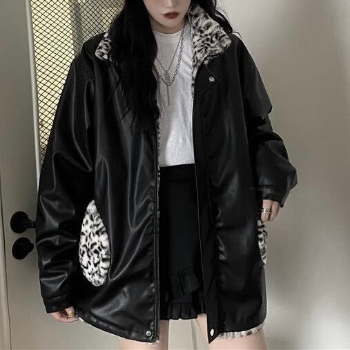 【Orchid】大人気アウター リバーシブル 韓国カジュアル 韓国デザイン トレンド レザー生地 ヒョウ柄 ジャケット mry001420