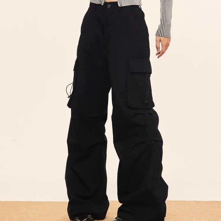 【Orchid】ヨーロッパ 韓国ストリート 韓国カジュアル ブラック ワイドシルエット カーゴパンツ mry001177