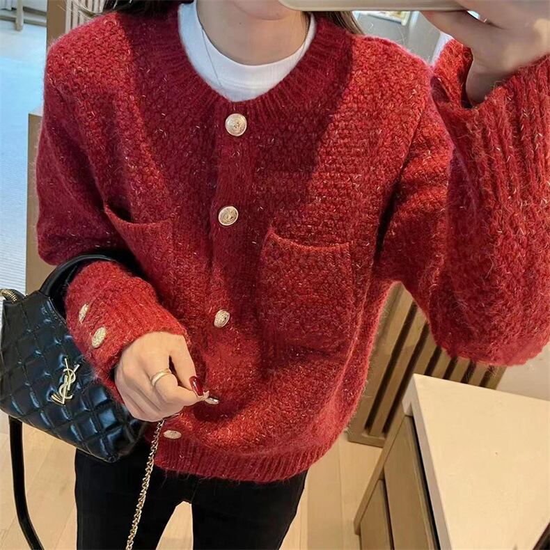 【Carina】2カラー展開 リブ編み ニットカーディガン mry001491