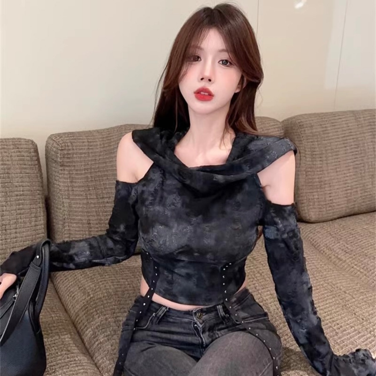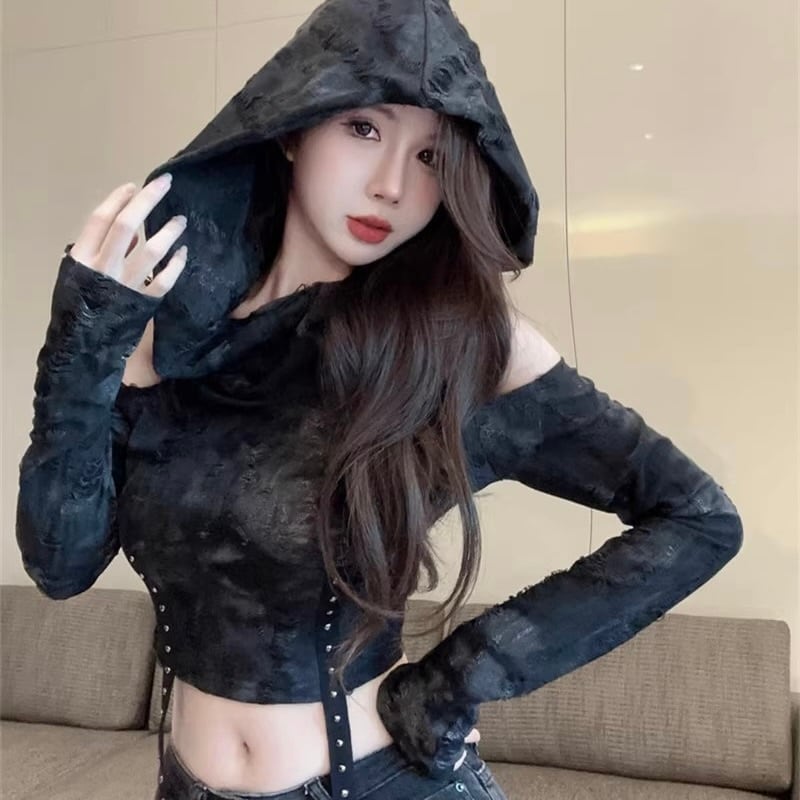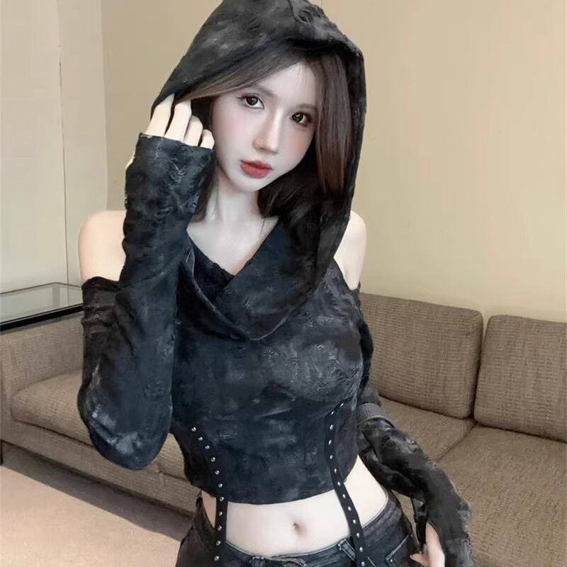 【Black Mamba】アメリカン 韓国カジュアル 韓国デザイン ショート丈 オフショルダー トップ mry001128