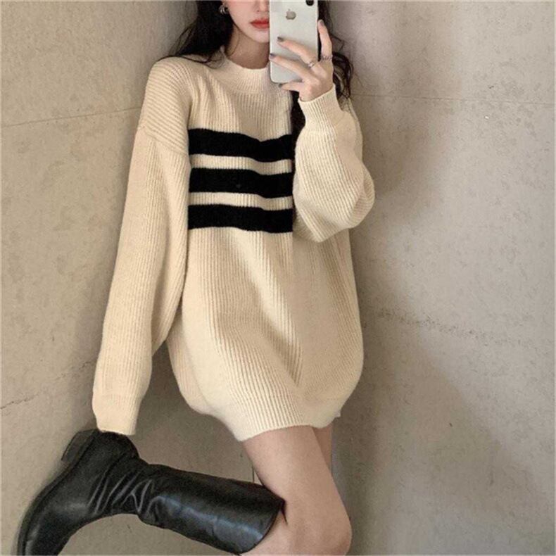 【Carina】3カラー展開 韓国ストリート 韓国カジュアル ストライプ オーバーサイズ ニット mry001304