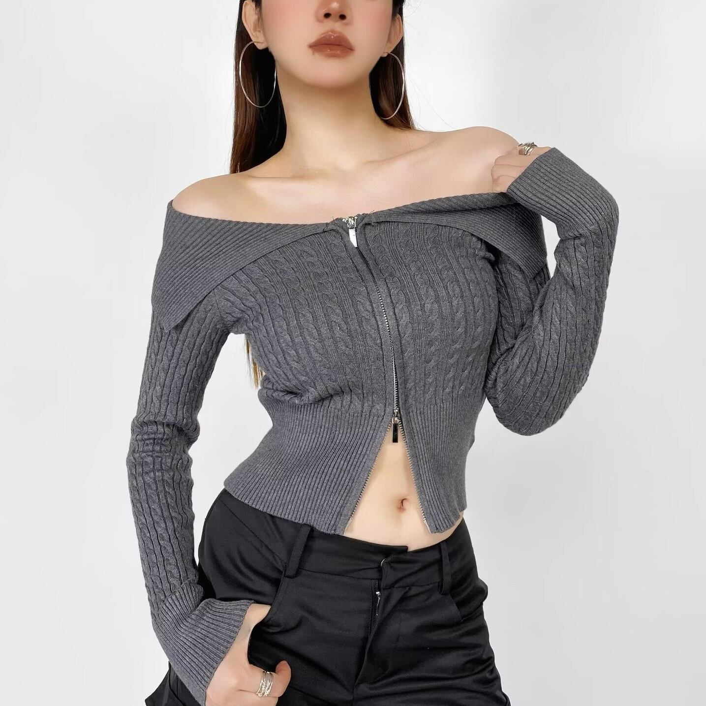 【Carina】4カラー展開 韓国デザイン 韓国カジュアル オフショルダー リブ編みニット カーディガン mry001118
