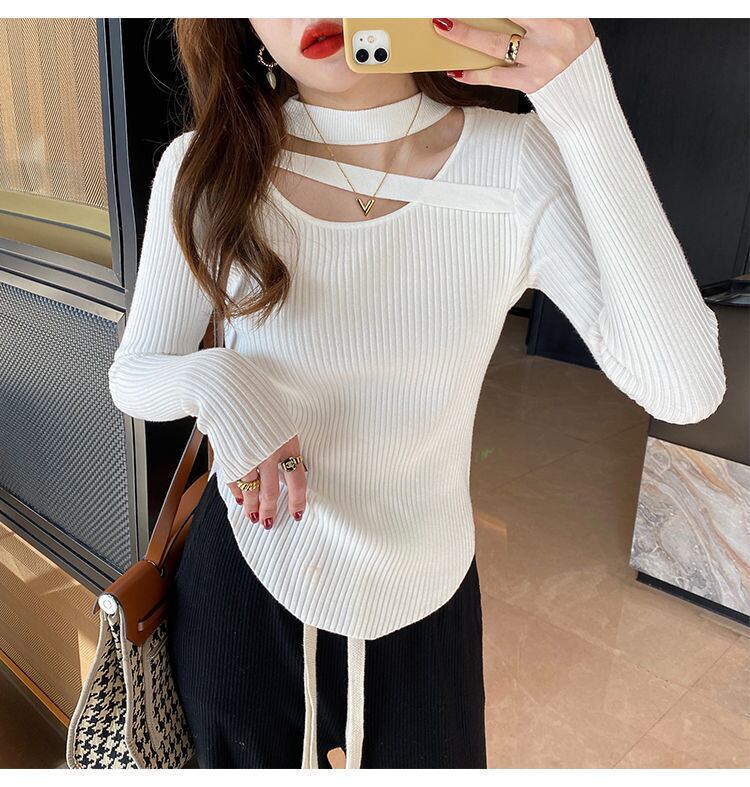 【Carina】2カラー展開 カットアウト リブ編みニット mry001137